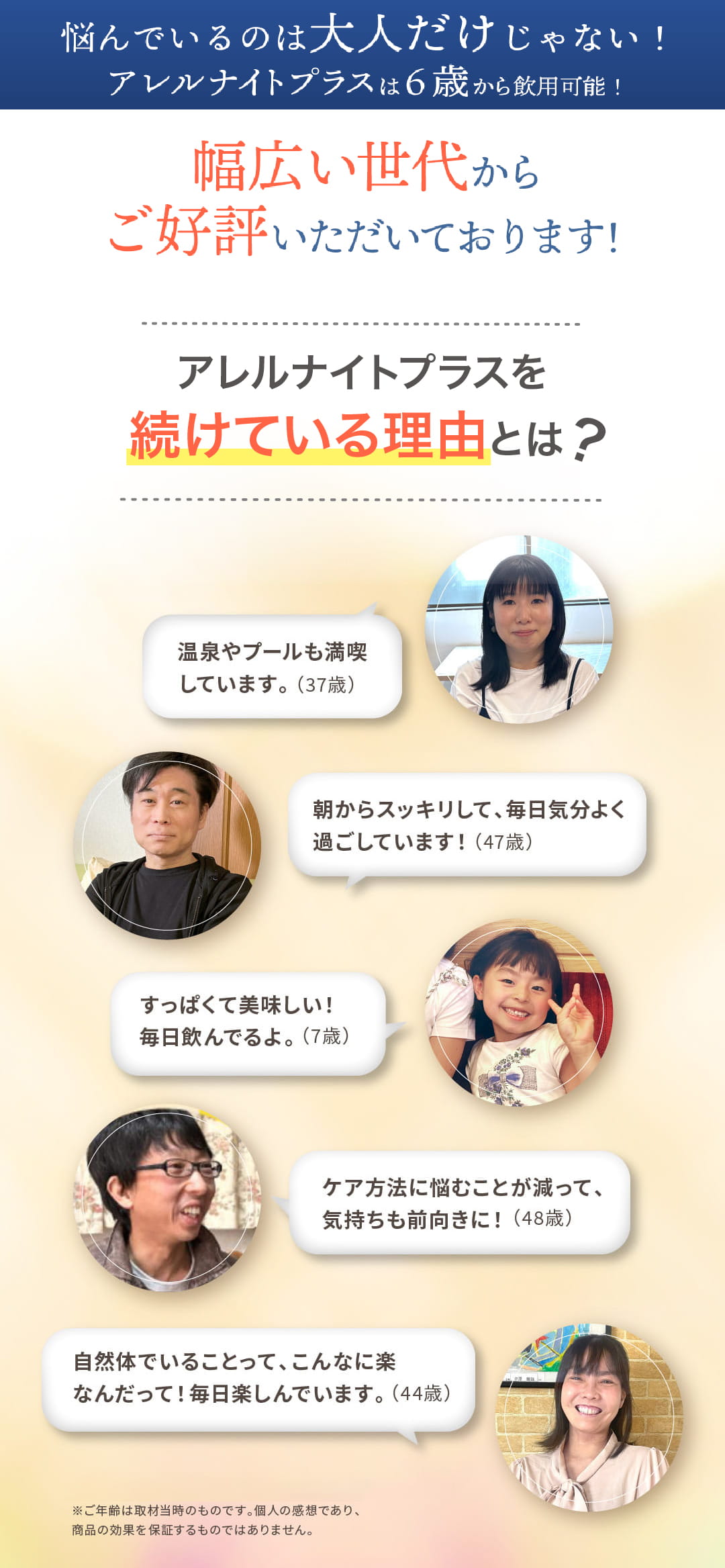 - アレルナイトプラスはビタミンも含めたっぷり配合しておりますので、6歳以上のお客様におススメしております。