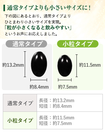 通常タイプと同じ成分ですが、粒を最大限小さくしつつ、品質を担保して製造するには工夫が必要でした。それには独自の技術が必要で、通常タイプと比べ大幅に製造コストがかかっているものの、粒の大きさでご飲用をためらっている方に新たな選択肢をご提供することを最優先に考えて価格も最大限努力致しました。