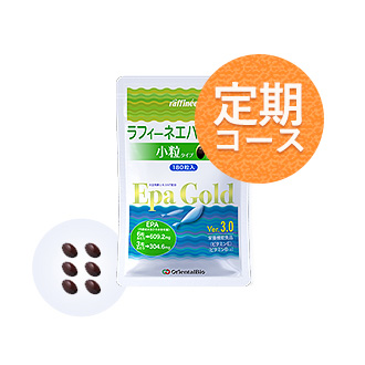 ラフィーネエパゴールド小粒タイプ(180粒入り)は、山口大学の小林誠名誉教授とオリエンタルバイオの共同開発により誕生しました。生の青魚と同じ立体構造を保った特許成分「小林式EPA」を配合。さらにウコンやタウリンなど7つの天然由来成分を配合し、吸収にもこだわりました。小林式EPAはオリエンタルバイオのエパゴールドにのみ配合された特許成分です。